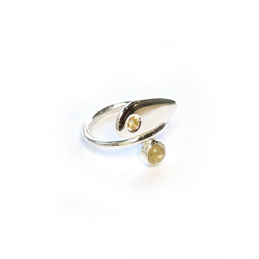 Zilveren ring met rutielkwarts en citrien