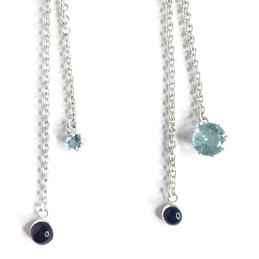 Zilveren oorhangers met aquamarijn, granaat en toermalijn